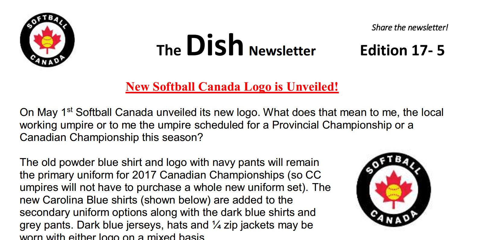 This edition discusses the new uniform, proper procedure for accepting substitutions, and the new 4th criteria for fitness at a Canadian Championship.